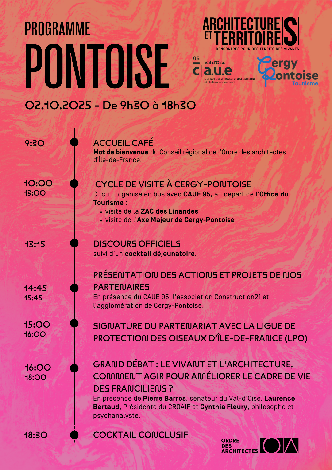 Organisée par le Conseil national et le Conseil régional de l’Ordre des architectes, cette deuxième édition des Rencontres « Architectures et territoires » se tiendra le jeudi 2 octobre 2025 à l’Office du tourisme de Pontoise (Val-d’Oise), sur le thème :